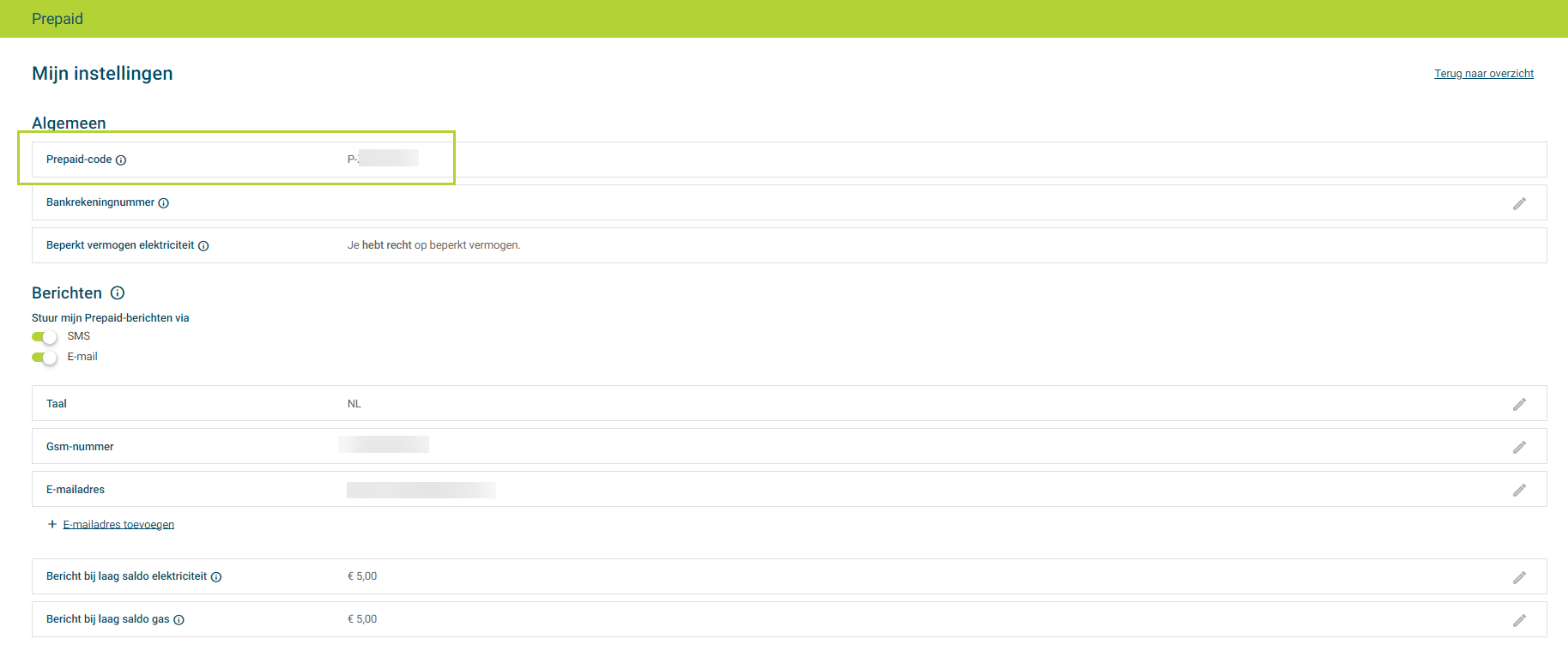 Tip: Nadat we Prepaid hebben geactiveerd, kreeg je een persoonlijke Prepaid-code. De code begint met de letter P, gevolgd door 8 cijfers en letters.