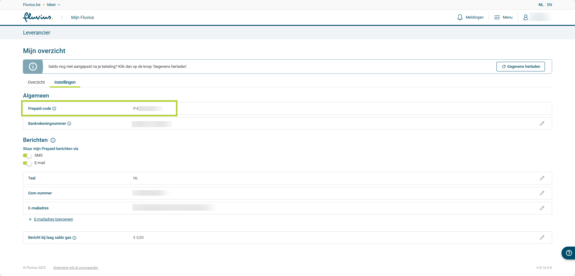 - Je Prepaid-code vind je onder ‘Algemeen’.