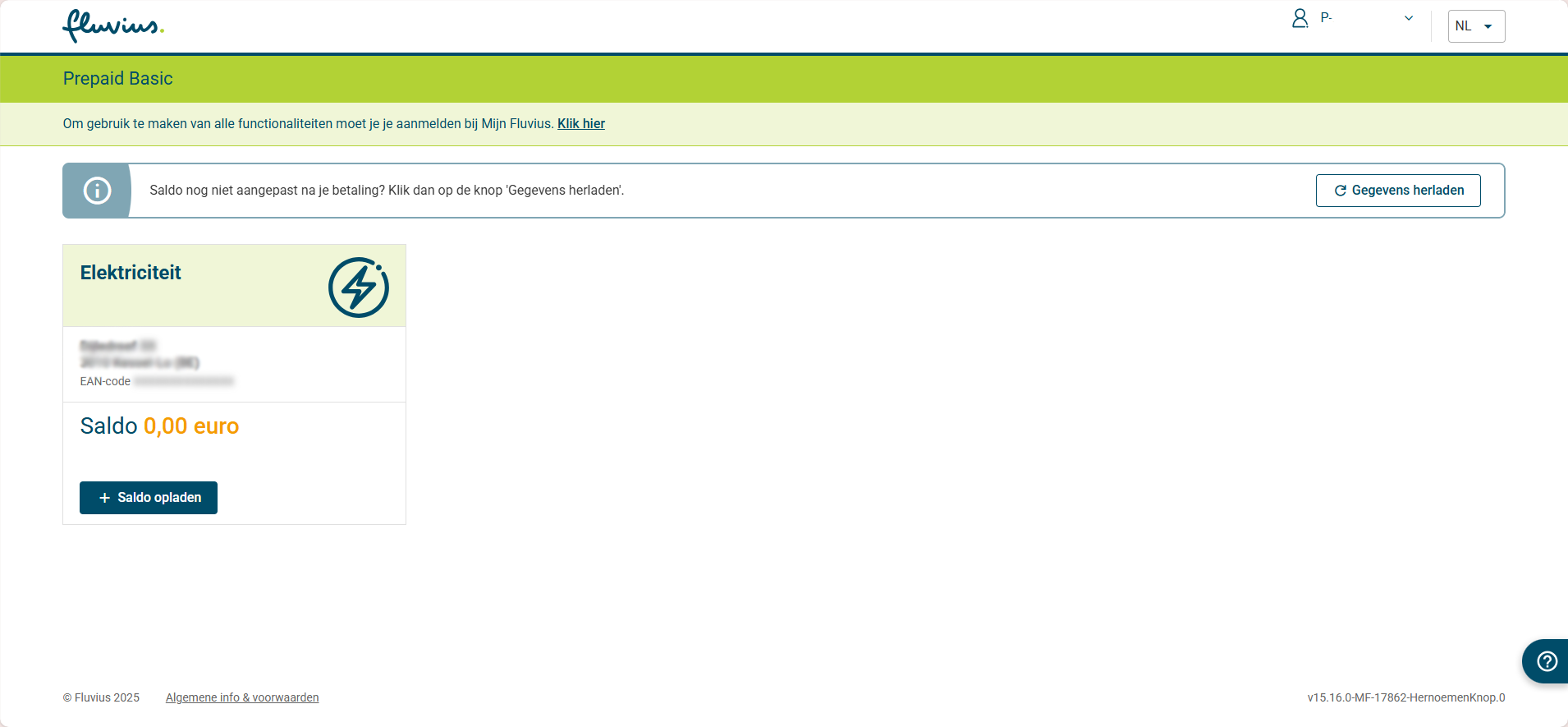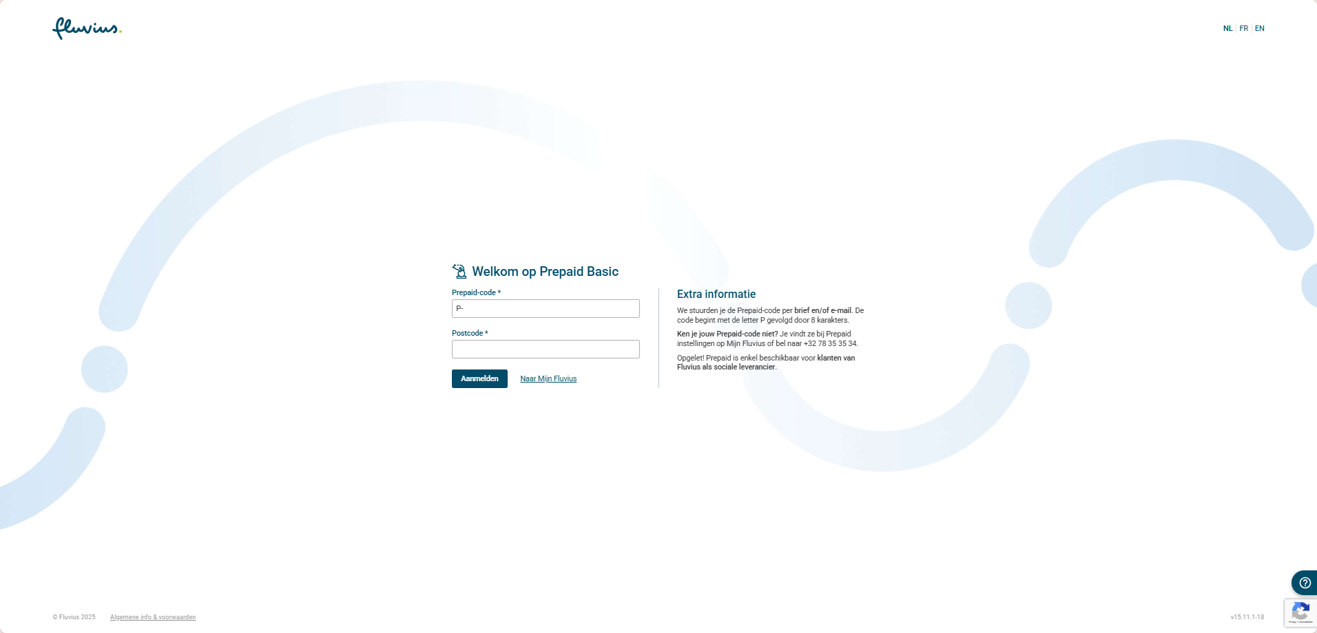 Je surft naar prepaidbasic.fluvius.be. Je logt in met je persoonlijke Prepaid-code. Deze code heb je gekregen toen we Prepaid voor jou hebben geactiveerd.