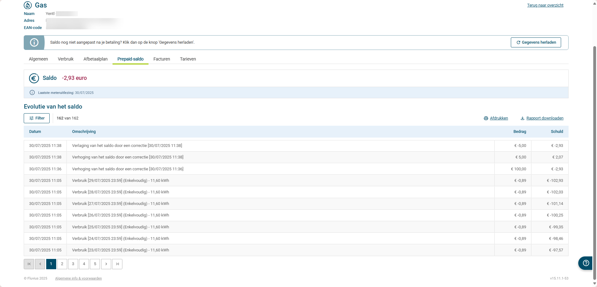 Prepaid-Saldo 'Evolutie van het saldo' toont een overzicht van je betalingen, de aangerekende kosten zoals je verbruik en het saldo dat je nog hebt.