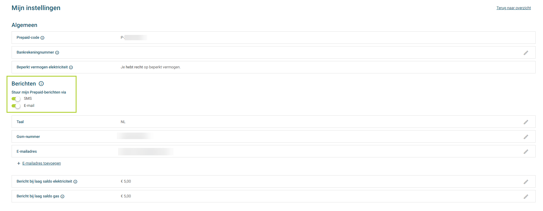 Wil je via sms of e-mail verwittigd worden wanneer je saldo minder dan 20 euro (of een bedrag naar keuze) bedraagt? Bekijk dan zeker de pagina 'Hoe pas je je Prepaid-instellingen aan?'