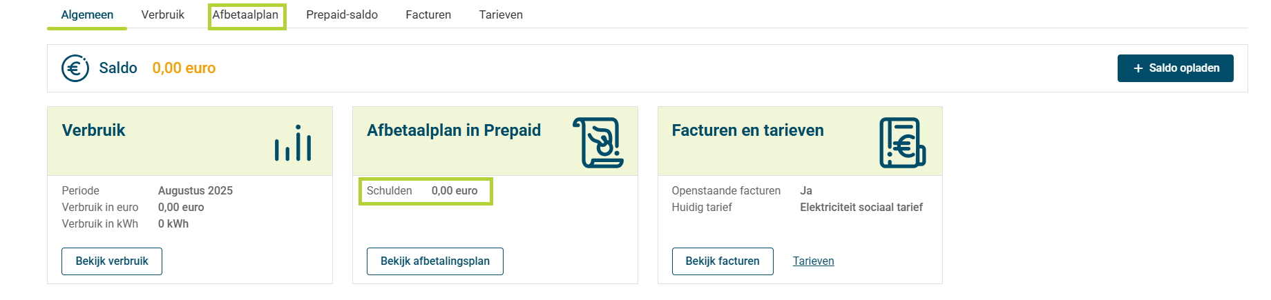 Je zal een afrekening ontvangen voor je verbruik sinds je laatste (jaar)afrekening (of start van je contract) tot het moment van de activatie van Prepaid. Hierbij houden we rekening met de betalingen die je hebt uitgevoerd en ook met eventuele openstaande schulden.